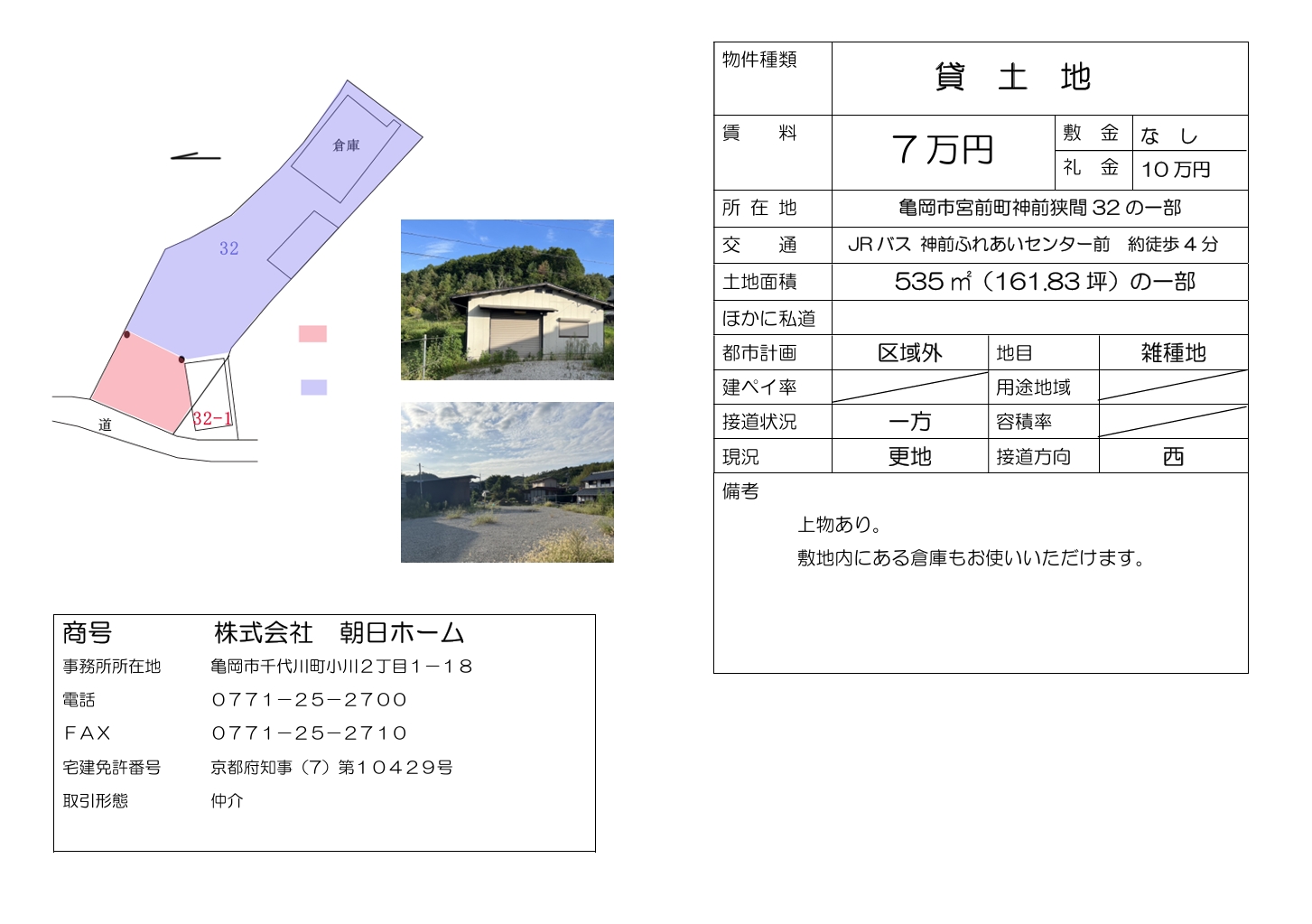 【 貸土地 】亀岡市宮前町神前(こうさき)